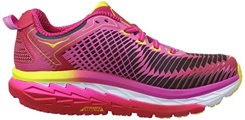 Studio : Hoka One One Publisher : Hoka One One Binding : Shoes Product Description Known for its revolutionary approach to running, HOKA ONE ONE attacks stability with the Arahi model. Incredibly lightweight and cushioned, the ARAHI shoe reinvents the concept of support. Equipped with HOKA's new J-Frame TM technology, designed to enhance the bucket seat, it provides support and protection while guiding the foot without the use of rigid materials with little tolerance. We call this dynamic stability. We believe this technology embodies the future of the running shoe. Hoka Arahi Women's Running Shoes 3D Puff Print Upper The upper of the Arahi is made with a 3D Puff Print Frame which is superbly lightweight and offers a secure and superbly comfortable fit around the foot. Plush padding has been added to the tongue to let it sit comfortably against the foot and to help prevent chafe and discomfort. Air Mesh panels have been strategically placed on the upper to allow cool air into the shoe at the same time as allowing warm air o be released, giving the shoe superb breathability and keeping the inside of the shoe as cool, dry and comfortable as possible. Meta Rocker Midsole The Early Stage Meta Rocker chosen for the midsole is specifically designed with a low heel-to-toe differential and works like a rocking chair for your foot which allows the foot to be guided effectively through the natural gait cycle. A new Hoka technology called the J-Frame which is designed to enhance the active foot frame and to deliver support and protection at the same time as guiding the foot without the use of rigid materials. Zonal Rubber Outsole The outsole is made from a durable rubber which will keep the bottom of the shoe from wearing away easily. Zonal rubber has been strategically placed in key areas along the outsole that are more likely to wear to give it extra durability, making sure you can turn to this shoe time after time for your running sessions. 0