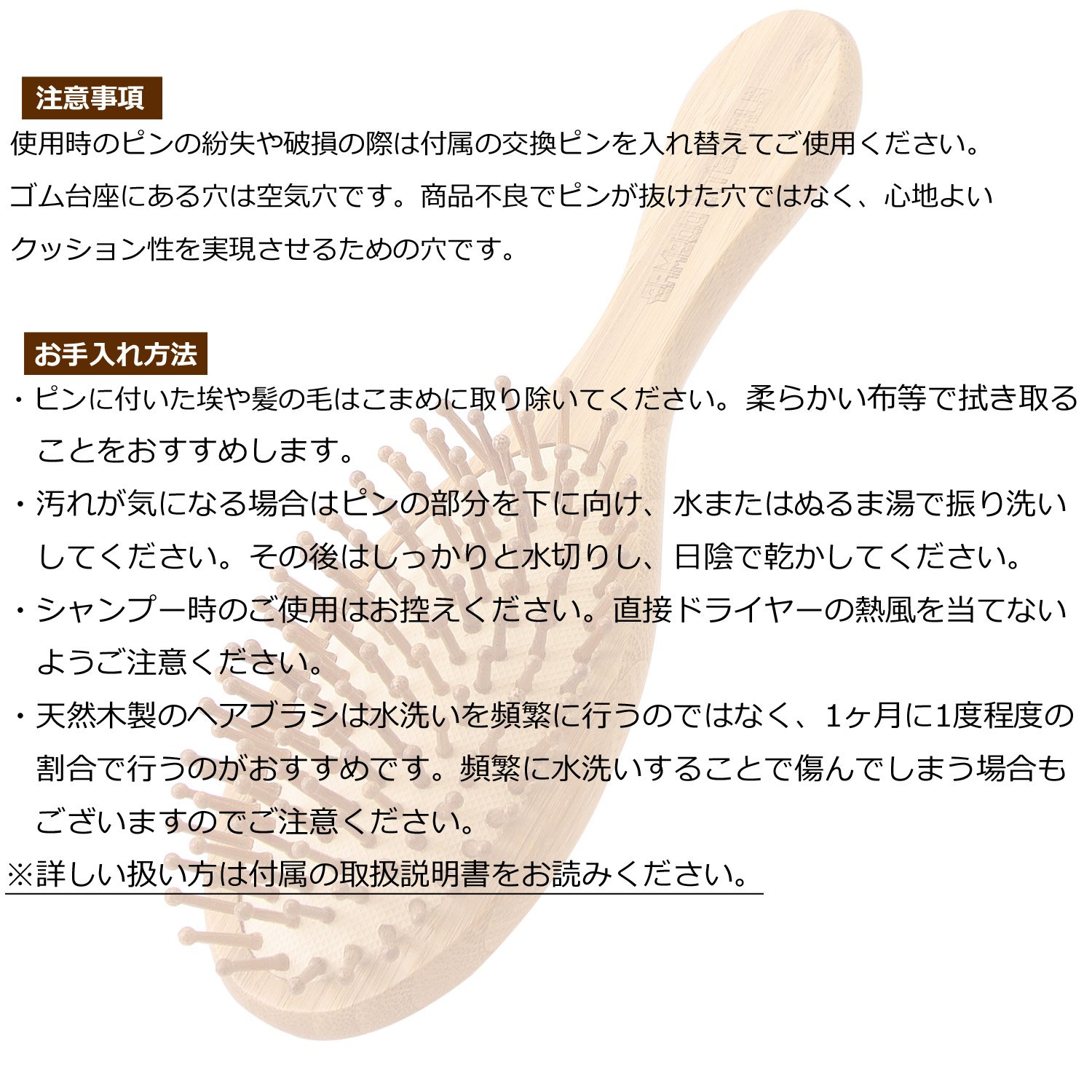 We are using hair-friendly natural bamboo so you can use it with confidence without worry of static electricity.