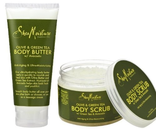 -. Feature : Shea Moisture Olive & Green Tea Body Butter with Avocado, 6 Fl. Oz / Shea Moisture Olive & Green Tea Body Scrub 12oz / Anti-Aging & Ultra Moisturising with green tea extracxt / Olive Butter and Avocado helps to hydrate, repair and heal skin. / Helps to regenerate skin cells and deeply moisturize