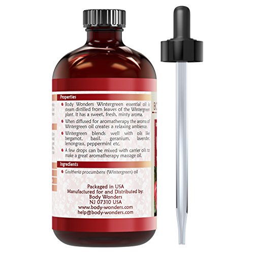 Body Wonders Wintergreen Essential Oil - 4 Oz. Bottle -100% Pure, Undiluted Therapeutic Grade Oils - Ideal for Aromatherapy