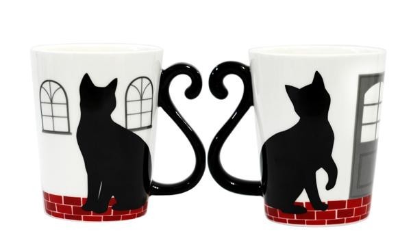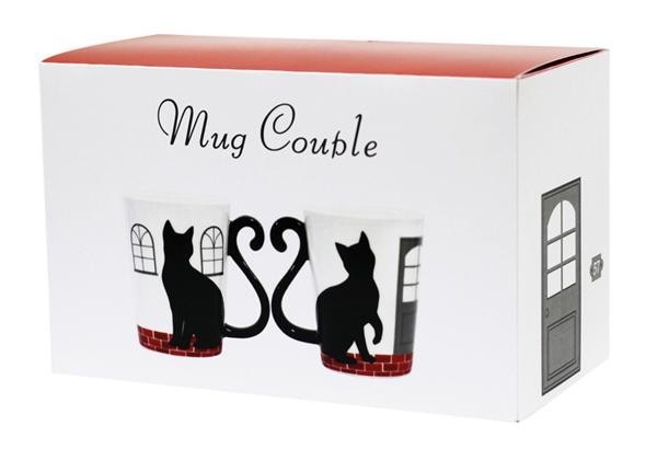 レンガの街並みを猫が歩いているような、ストーリー性のあるデザイン。ちょっとした贈り物にぴったりなペアマグカップです♪