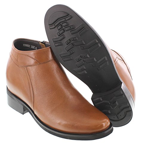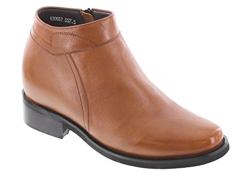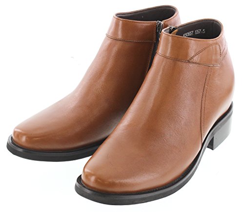 CALDEN - K50657 - 3.2 Inches Taller - Height Increasing Elevator Shoes - Brown Formal Zipper Boots