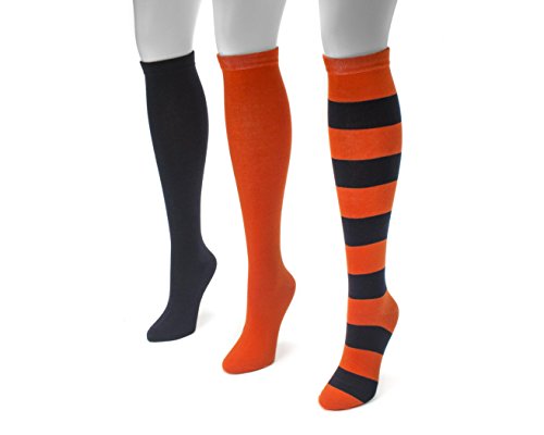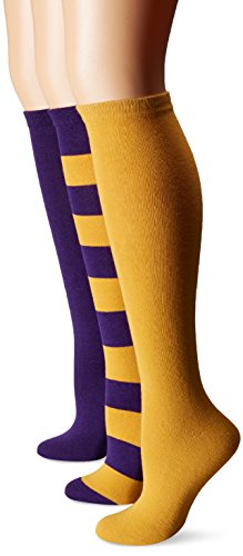 Studio : Muk Luks Women's Accessories Publisher : Muk Luks Women's Accessories Binding : Apparel Product Description Show your team spirit and be a fan favorite in our new Muk Luks game day collection. This collection features fun striped styles in your favorite sport's teams colors!! our 3 pair knee high sock pack is a unisex style and is made of 70 percent cotton, 27 percent polyester, and 3 percent spandex. These packs come in various team colors. Each pack has two solid pair of socks (one in each team color) and a striped pair with both team colors so you can take your pick! these socks should be machine washed on gentle cycle, no bleach, and tumble dried low heat. Made in china. 0