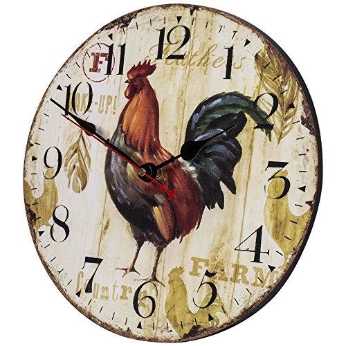 SkyNature Quartz Movement Silent Non-Ticking Wooden Wall Clocks (12 inch rooster)