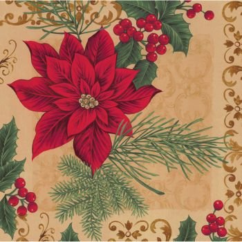 -. Title : Opulent Poinsettia Christmas 3-Ply Beverage Napkins 16 Per Pack