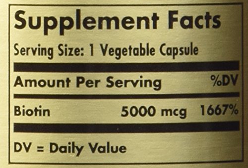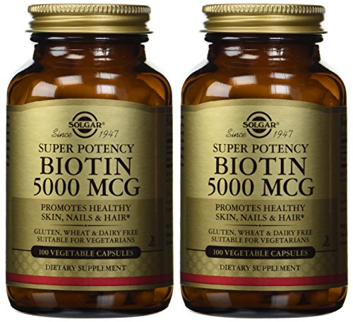 Product DescriptionSolgar ndash; Biotin 5000 mcg, 100 Vegetable Capsules, 2 Pack ndash; Supports Healthy Skin, Nails and Hair0
