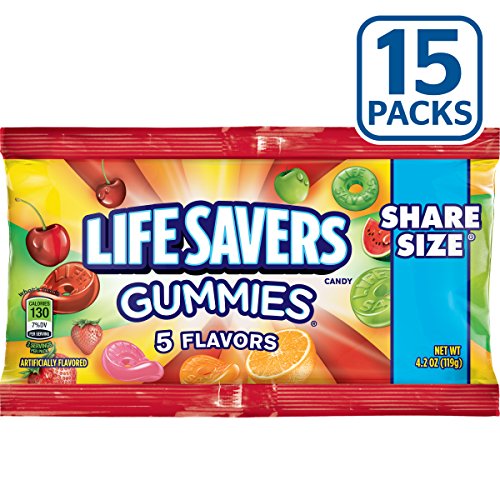 -. Feature : Life Savers 5 Flavors Gummies candy has the perfect assortment of fruity, gummy goodness: cherry, watermelon, green apple, strawberry, and orange / Gummy candies that are a hole lot of fun / Great for lunches, snacks, or to share with friends / The classic American candy, originally designed to resemble a life preserver / Package includes 15 individual share size packs, 4.2 ounces each