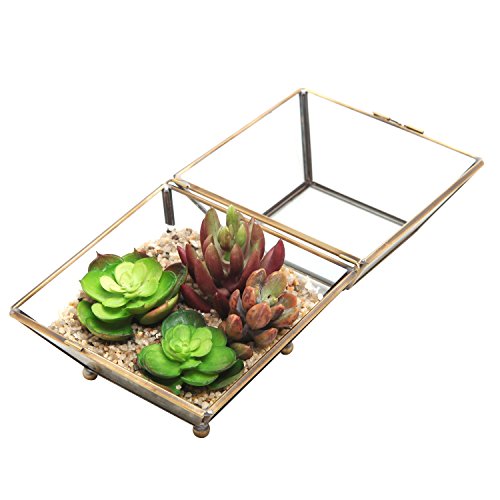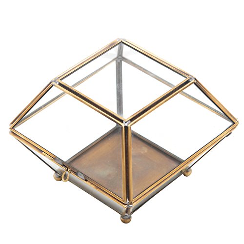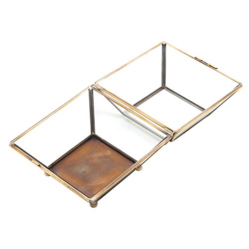 MyGift Vintage Brass & Glass Jewelry Box with Lid, Decorative Shadow Box