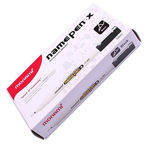 Monami Name Pen X Fine/thin Permanent Marker Black Dozen Box (12pcs)