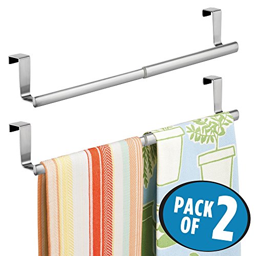 Studio : MetroDecor Publisher : MetroDecor Product Description The mDesign Over-the-Cabinet Kitchen Dish Towel Bar creates extra storage where you need it. This Expandable Towel Bar extends to 17 inches wide and easily rests over your bathroom or kitchen cabinets and drawers. Easily holds up to two towels. The brushed stainless steel is a stylish and eye-catching accent in any modern motif. 0