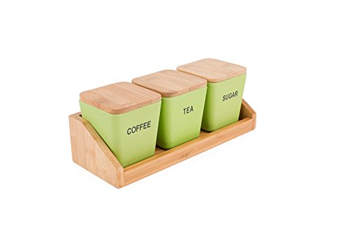 Peterson Housewares BF0265005SGR4 Square Storage Containers Bamboo Fiber Body with Cover and Shelf (Set of 3), Green
