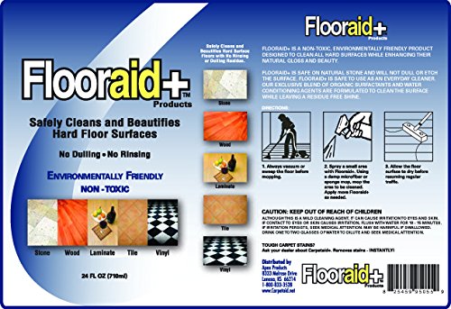 -. Binding : Health and Beauty -. Brand : Flooraid -. EAN : 0825459950559 -. Feature : Floor aid+ / Hard surface cleaner-24oz. / FloorAid+ is a non-toxic and environmentally friendly cleaner formulated to clean hard surfaces. / No Dulling-Safe on natural stone, wood, laminate, tile and vinyl. -. IsAdultProduct : 0 -. Label : Rock Doctor -. Manufacturer : Rock Doctor -. Model : 95055 -. MPN : 95055 -. NumberOfItems : 1 -. PackageQuantity : 1 -. PartNumber : 95055 -. ProductGroup : Health and Beauty -. ProductTypeName : HEALTH_PERSONAL_CARE -. PublicationDate : 2017-07-14 -. Publisher : Rock Doctor -. ReleaseDate : 2017-07-14 -. Studio : Rock Doctor -. Title : Flooraid Hard Surfaces Cleaner, 24 Ounce -. UPC : 825459950559
