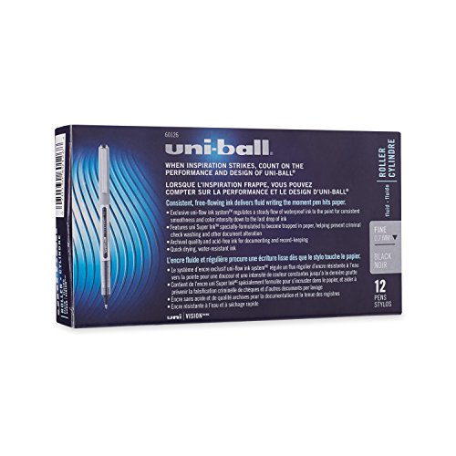 uni-ball Vision Rollerball Pens, Fine Point (0.7mm), Black, 12 Count