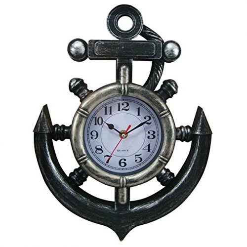 Hampton Nautical Y-67039 Decorative Pewter Ship Wheel & Anchor Wall Clock 15 - Decorative Anchor -