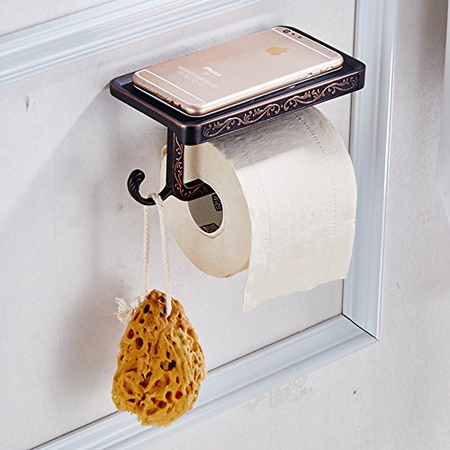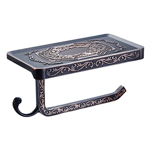 Labkiss Toilet Paper Holder with Mobile Phone Storage Shelf, Antique Brass Carving, Waterproof, Wall Mount Towel Tissue Roll Hanger with Single Hook, for Bathroom Kitchen Toilet, Bronze Oil Rubbed