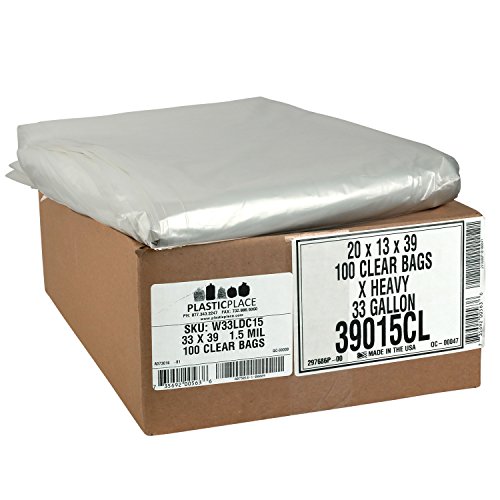 Plasticplace 31-33 Gallon Trash Bags, 1.5 Mil, 33"W x 39"H, Clear, 100 / Case