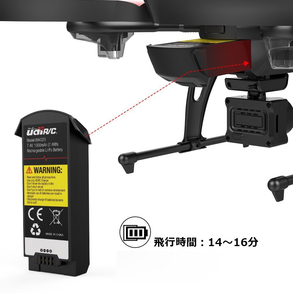 Large capacity 7.4 V 1000 mAh battery installed, achieving a long flight of about 15 minutes