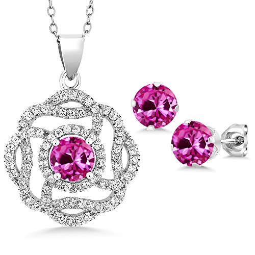 -. Title : 5.06 Ct Round Pink Created Sapphire 925 Sterling Silver Pendant Earrings Set