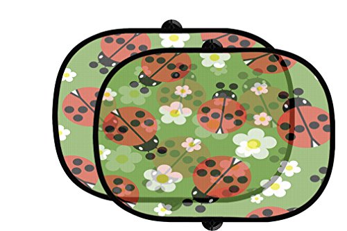 -. Title : Flower With Ladybugs 2 Pcs Auto Foldable Front Rear Side Window Sunshade Mesh