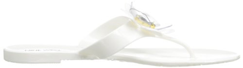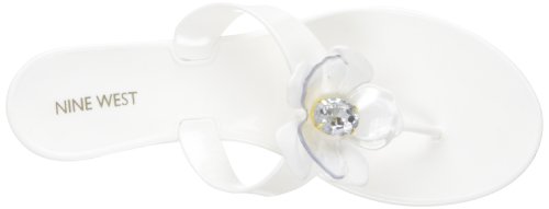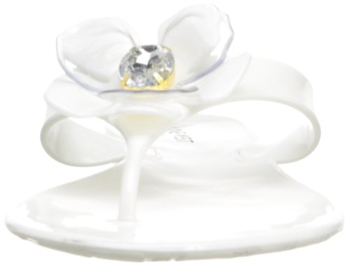 Glossy shine and a dazzling ornament deck this simple sandal out for sunny days.