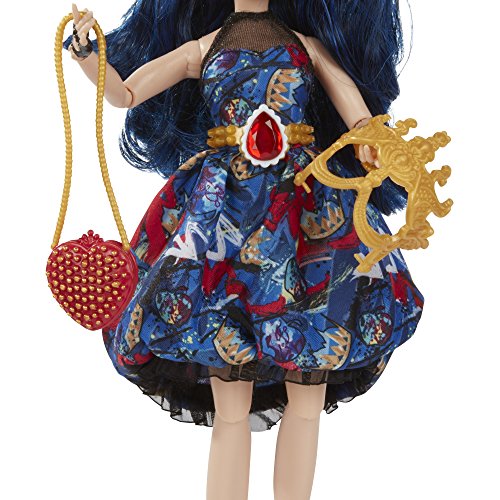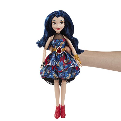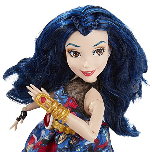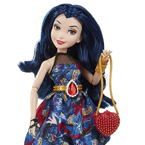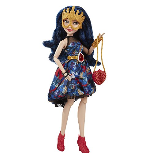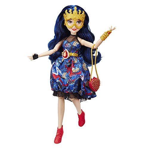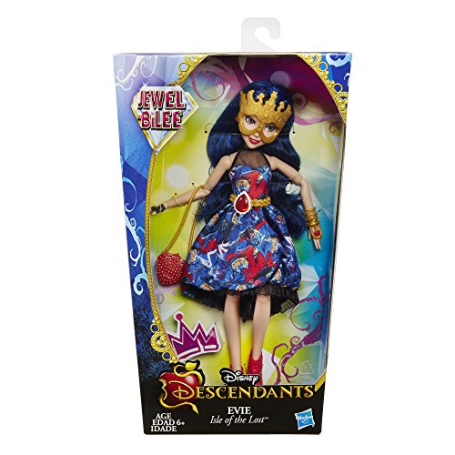 -. Feature : Disney Descendants doll inspired by Evie from Isle of the Lost / Imagine getting her ready for the Jewel-bilee ball / She comes wearing a dress adorned with her signature ruby-colored jewel / Look for other Disney Descendants Jewel-bilee dolls (each sold separately) / Includes doll, dress, mask, purse, bracelet, belt, and pair of shoes