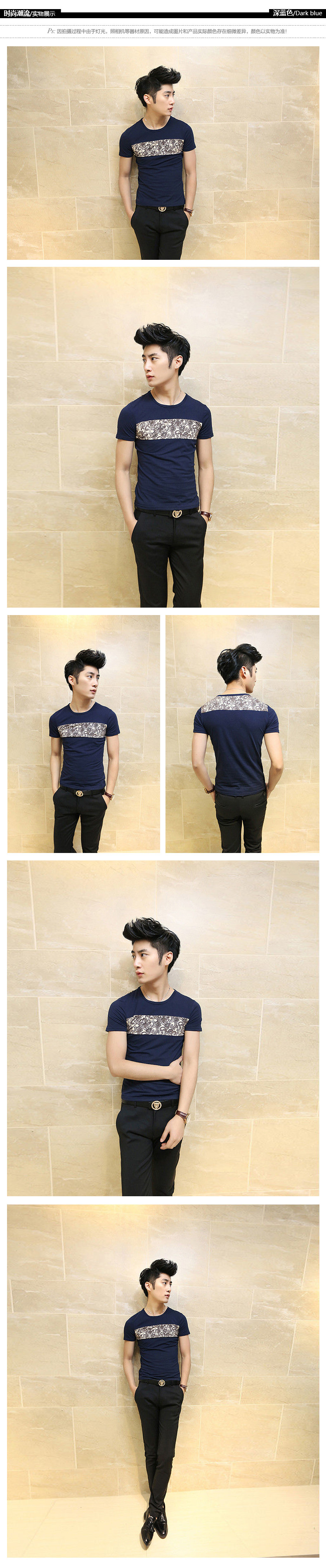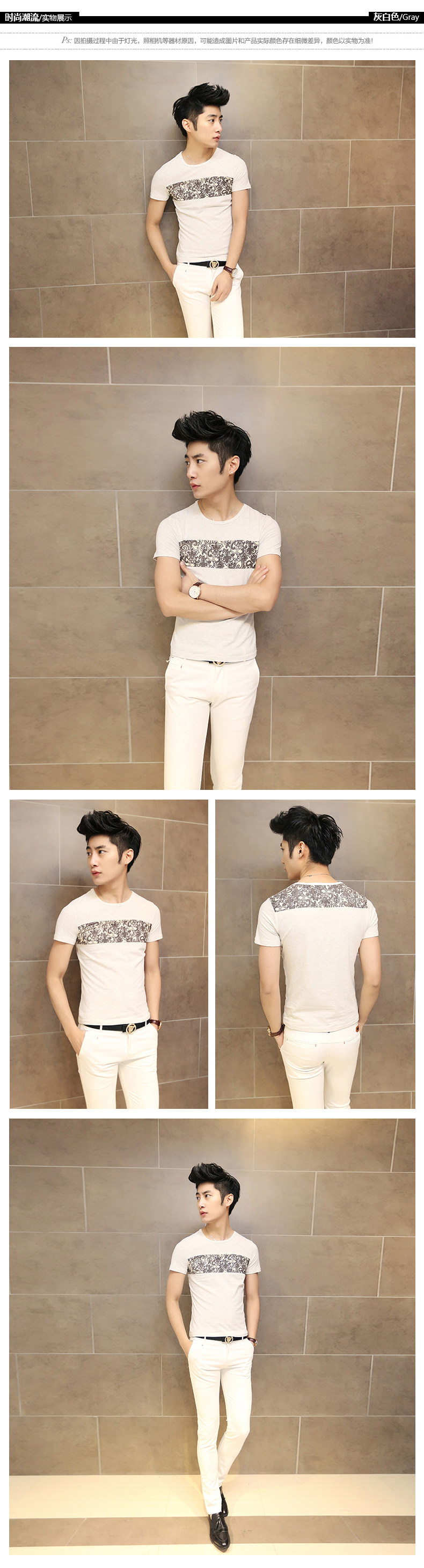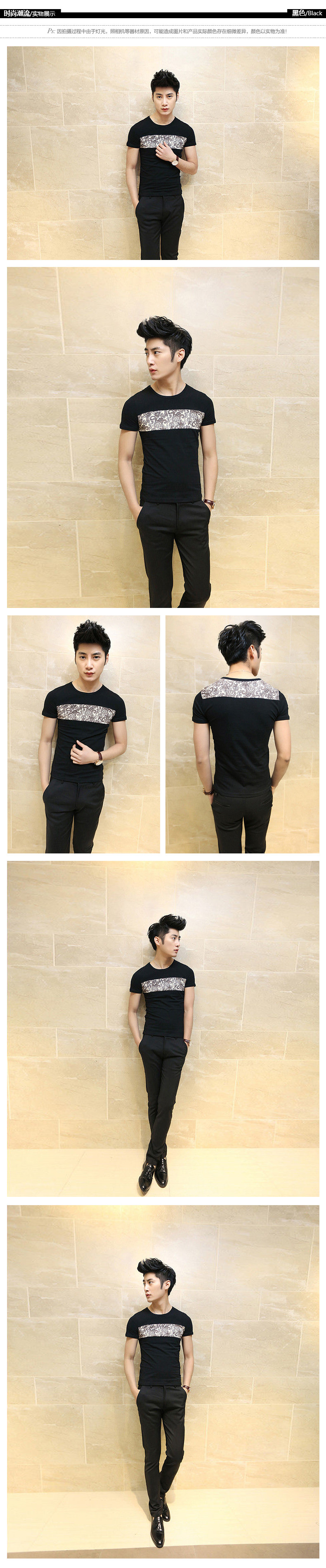卓野韩版男装 春夏季青少年修身型体恤潮流圆领短袖T恤男衣服