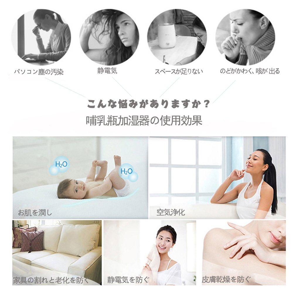 Cute baby bottle type table top humidifier is fashionable and creates a calm atmosphere.