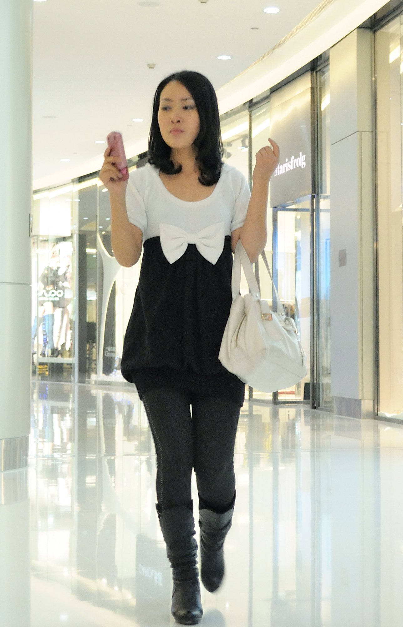 Pretending to be watching mobile phones, cleanly moisturize and wipe the skin.