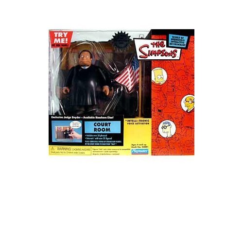 -. Feature : The Simpsons - World of SP.R.Ingfield Interactive Environment / Includes exclusive Judge Snyder figure / Includes over 30 phrases - IntelliTronic Voice Activation / Interacts with over 35 compatible figures (purchased separately) / Batteries installed and included - "Try Me" button available on side of retail box to hear voice phrases