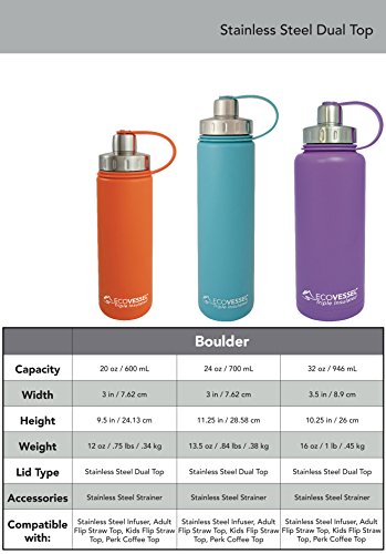 You can fill this bottle with both cold and hot drinks and take it anywhere, since its secure top will keep your drink inside where it belongs. So, toss in a tote bag or backpack and hit the trails, golf course, run errands around town or keep on your desk for convenient hydration through the day. This bottle features our vacuum TriMax triple insulation technology and has been tested to keep liquids cold for 36 hours and hot up to 8 hours. Its dual use leak proof top has a wide opening for easy filling and a small opening for easy drinking. A versatile vessel for anything, anytime, anyplace and now available with interchangeable tops!Feature