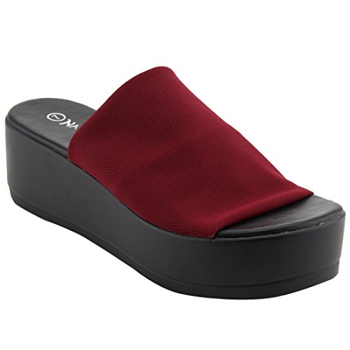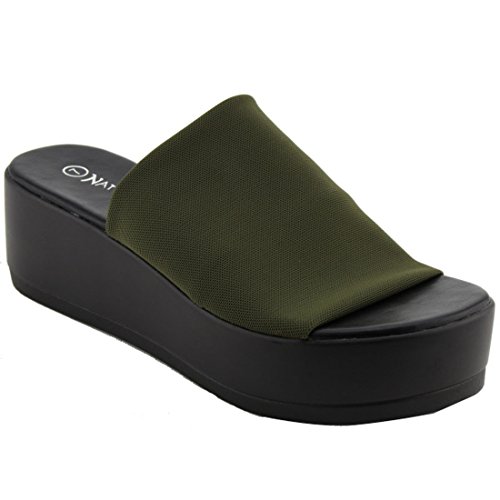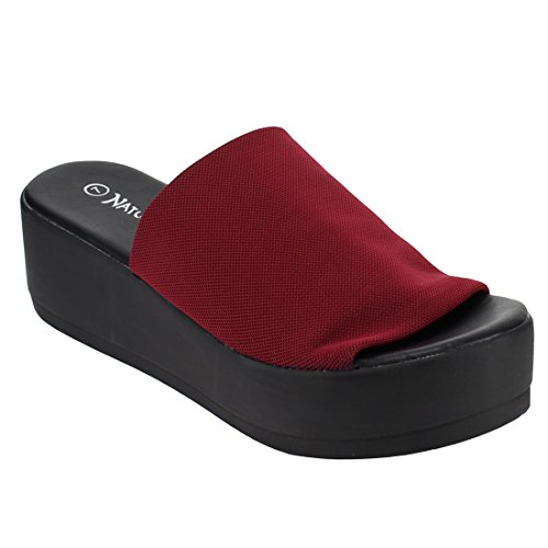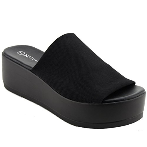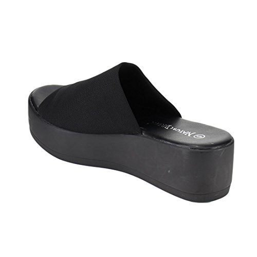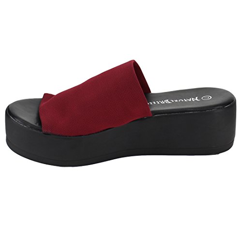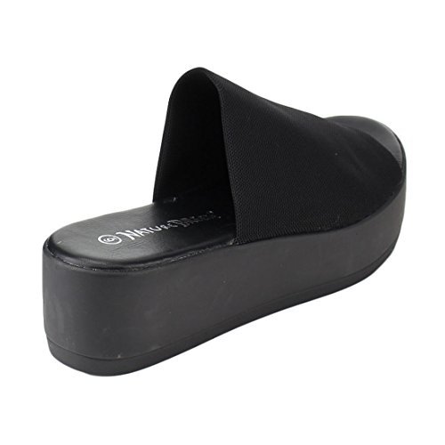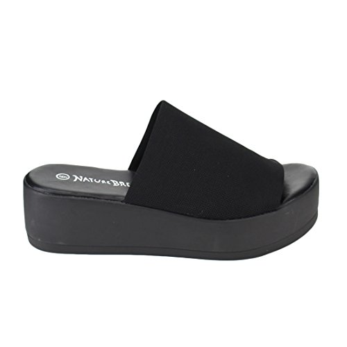Nature Breeze EL85 Women's Stretchy Slip On Peep Toe Backless Platform Sandals