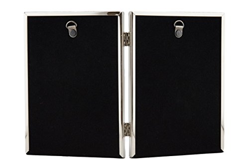 High quality metal silver color double frame. Two hinges. Black back with two small hanging hooks.