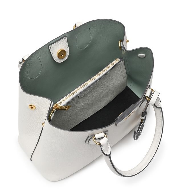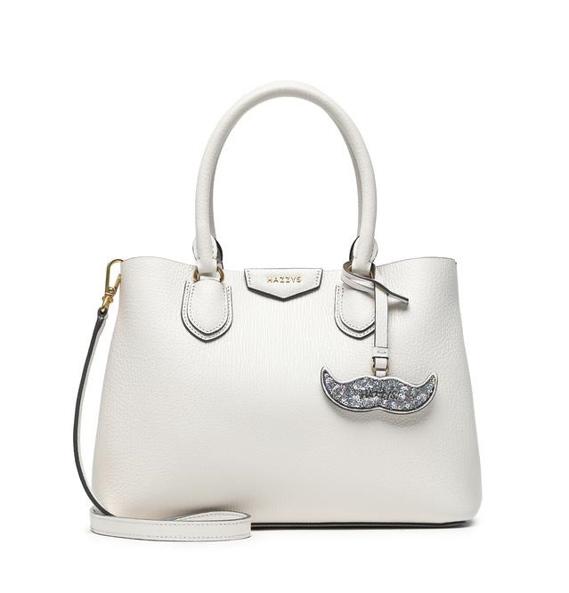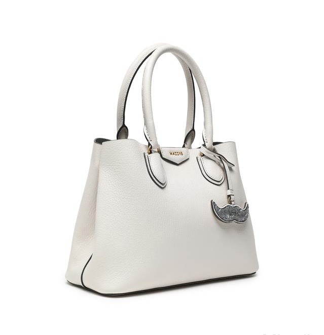 스팽글로 이루어진 탈착가능한 콧수염 모양 참 장식으로 포인트를 주었으며 내부 배색으로 세련된 외관을 연출한 토트백입니다.