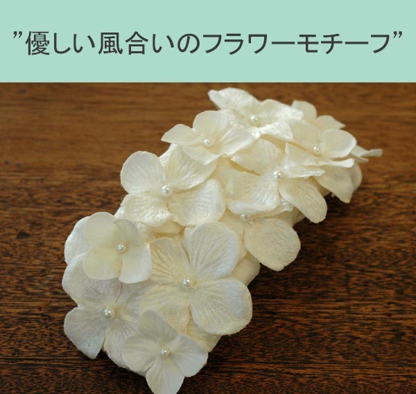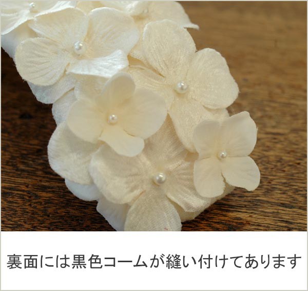 花(起毛したフェルト生地を型押しで作ったもの) 下地はサテン コームはスチール製 |