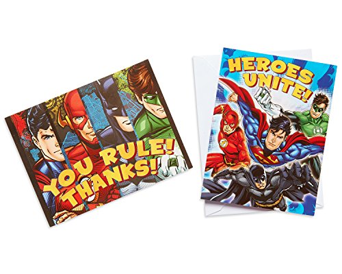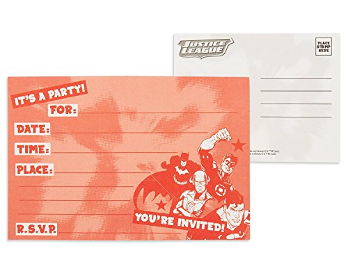 -. Feature : 8 invitations with white envelopes, 8 thank-you postcards, 1 checklist / Package includes party invites and thank-you cards featuring Superman, Batman, Green Lantern and Flash! / Comes with a handy checklist to keep track of guests! / Justice League invites and thank-you notes feature their favorite superheroes - Superman, Green Lantern, Batman and Flash - in crime-fighting action / Perfect American Greetings party supplies for a kid's birthday party or Justice League-themed party