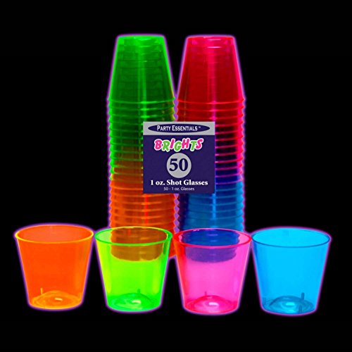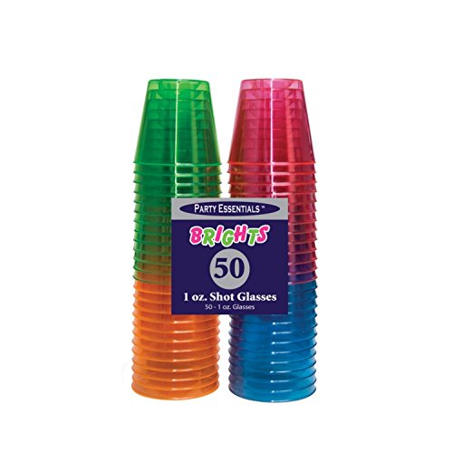 Party Essentials Hard Plastic 1-Ounce Shot Glasses, 50-Count, Assorted Neon