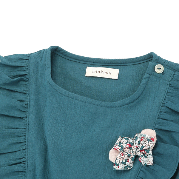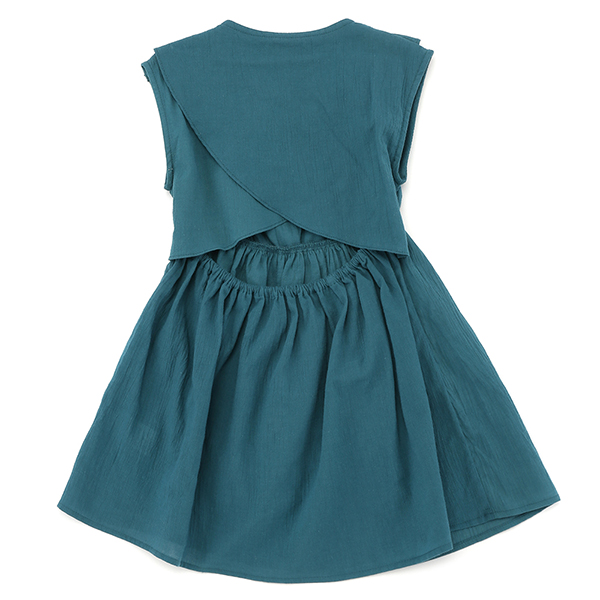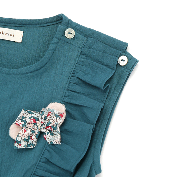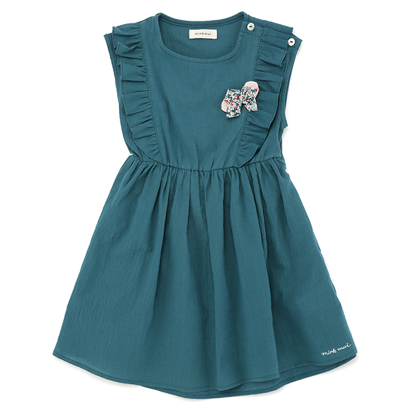 화사한 컬러감의 나시원피스로, 프릴장식과 코사지로 포인트를 주었습니다.