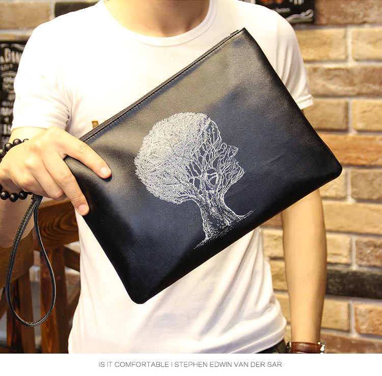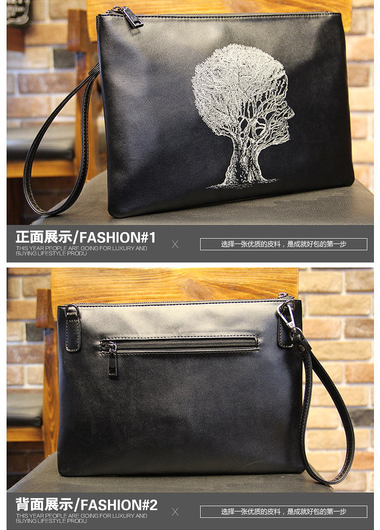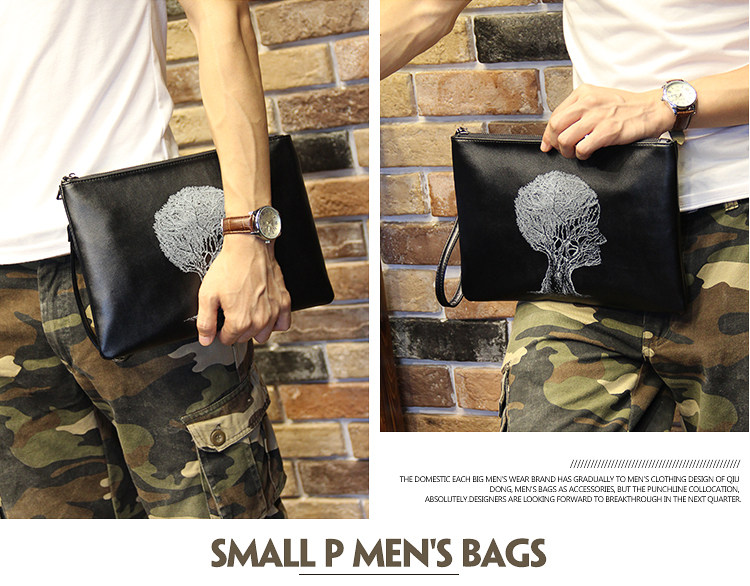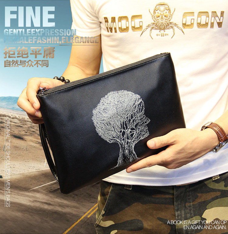 男士唯美人头拉链手拿包多功能商务手包男信封包韩版潮IPAD包