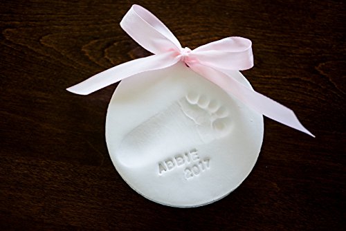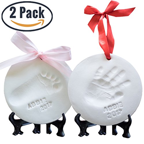 THE ONLY COMPLETE ORNAMENT SET ON AMAZON: The other 2 piece baby ornaments come with only one display easel (or none). But we’ve left nothing out of our Keepsake Kit! Your print kit contains 2 packs of non-toxic clay, 2 molding rings and 2 paper mats to work on. For display there are 2 easels, 4 colored satin ribbons and a hole-punch. Plus we’ve added a BONUS name and date printing kit and simple directions.