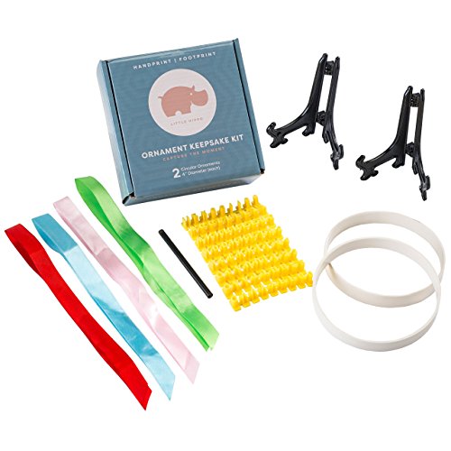 Little Hippo Premium Ornament Keepsake Kit, Baby Handprint kit And Footprint Kit -2 Ornaments In Non-Toxic Clay, And Comes With 2 Easels, 4 Ribbons Plus...