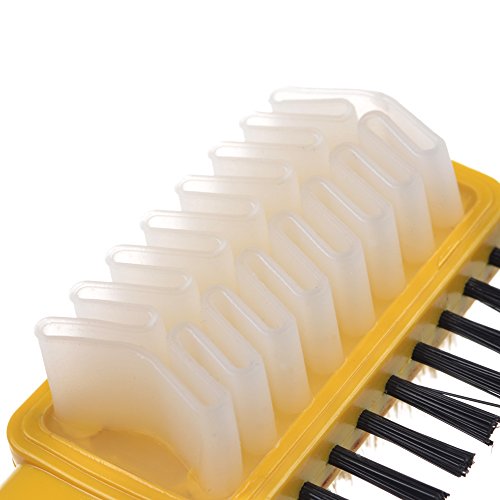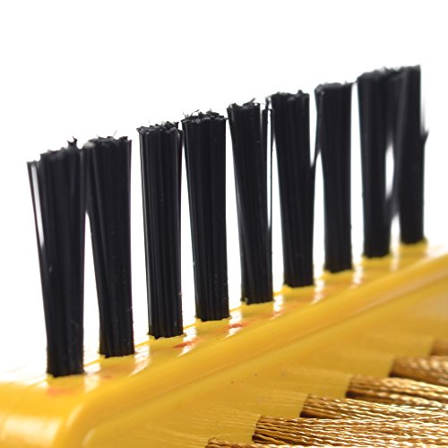 -. Feature : Removes surface dirt and dried mud, then restores the nap / One side with soft rubber and the other side with brass bristle to lift dirt and remove scuff marks. / Hand held brush perfect for on-the-go cleaning clothes, shoes, and handbags. / Total height:6.5 inch.