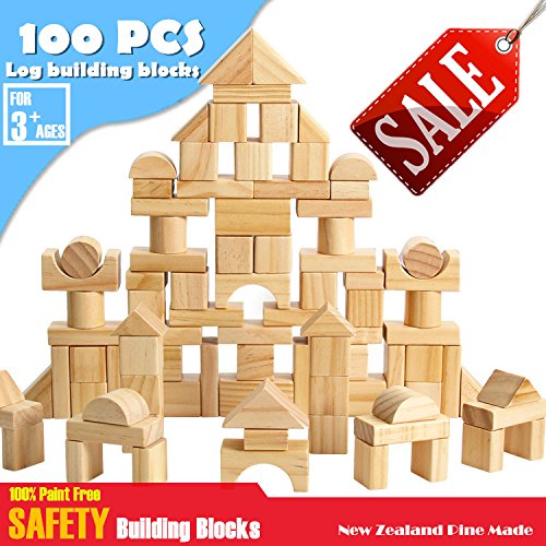 -. Title : CECII 100 Pcs Wooden Blocks Wood Building Block Set with Carrying Bag - 100% Real Wood(Natural Colored)