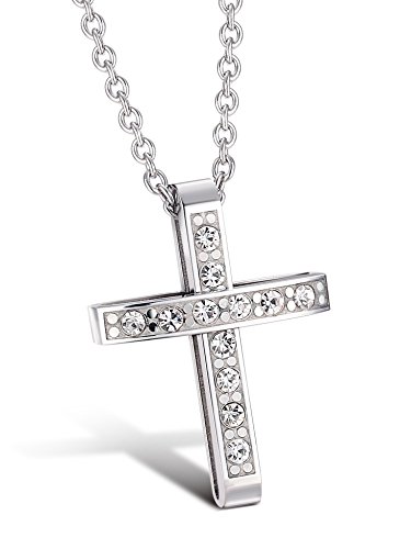-. Title : Besteel CZ Stainless Steel Charm Cross Necklace Pendant for Women Crystal Necklace Chain 2mm, 16-22 inches
