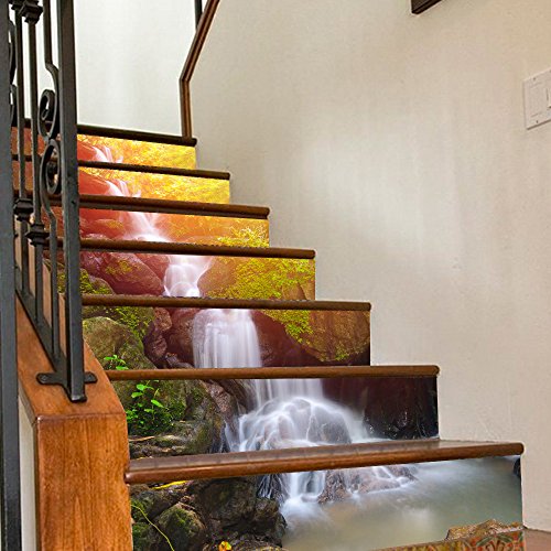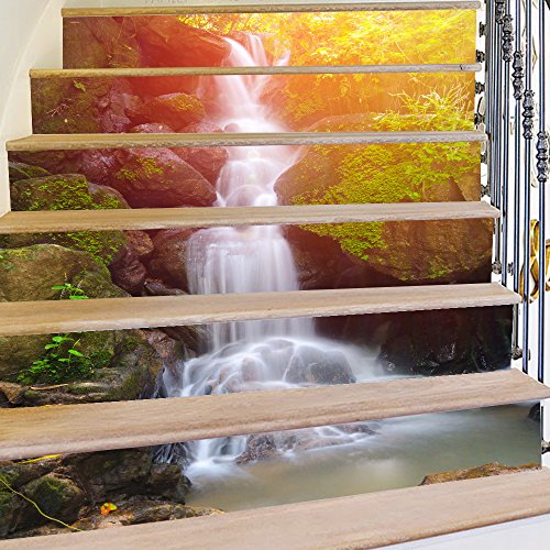HICBOX 3D Creative Forest Waterfall DIY Refurbished Stairs Stickers Removable Waterproof Stairs Mural 100CMx18CM x 6pieces(39.3"w x 7"h x 6pieces)