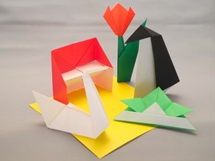 - Origami creations range from a simple boat, cup, and hat to the more elaborate but feasible dinosaur, shark, and rabbit.