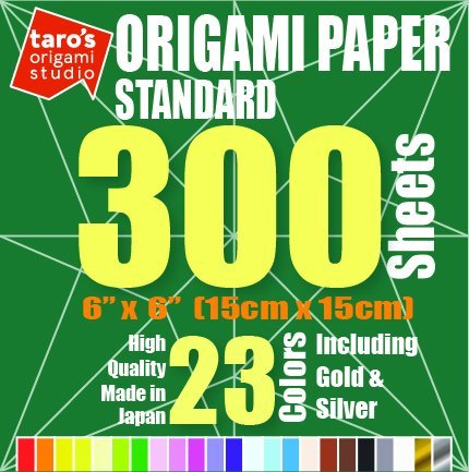 [Standard 300 Made in Japan] Taro's Origami Studio Premium Japanese Origami Paper (6 inch, 300 Sheets, Single Side 23 Colors Including Gold and Silver)