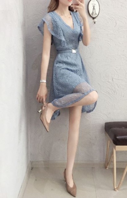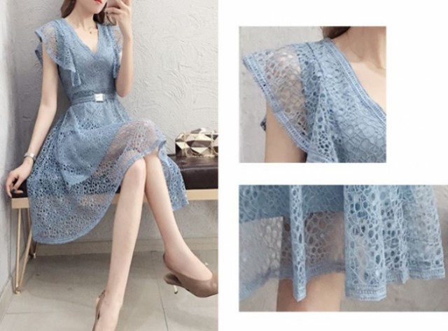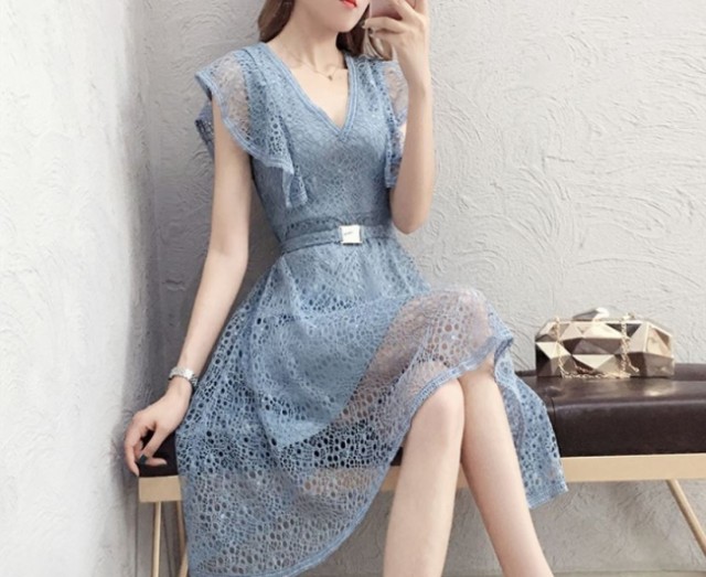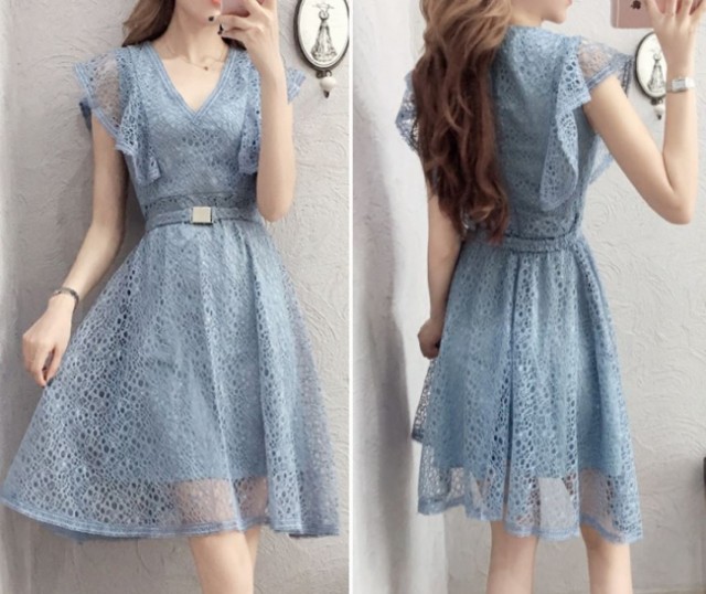 ウエストベルトとレースがポイントで女性らしさを引き立ててくれます。