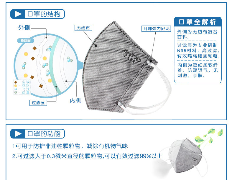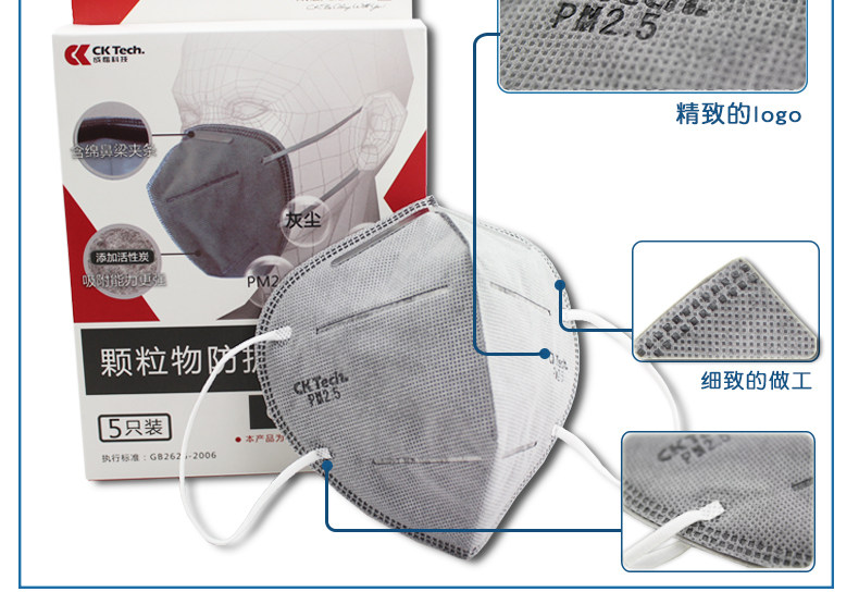 成楷科技 5只/Ck N95活性炭口罩 专业防雾霾PM2.5 男女款防尘口罩