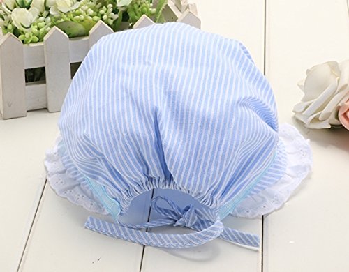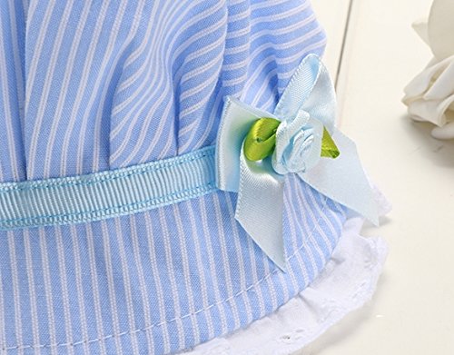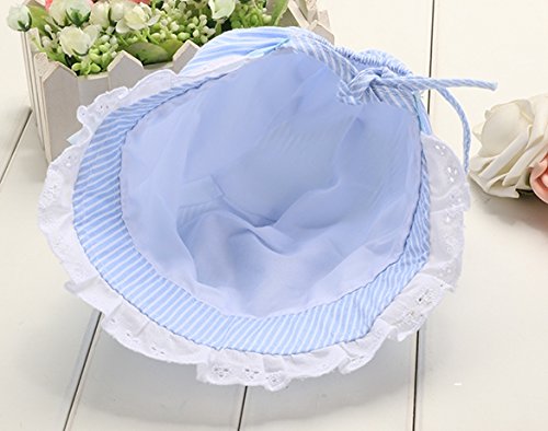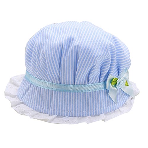 Babies Girls Children Cute Striped Lace Patchwork Bow Sun Hat Cap (Blue)