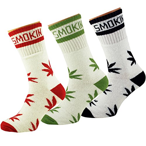 -. Feature : "STAY SMOKIN" text at the top / Ganja leaf P.R.Int all over. Contrast colouring at the cuff, heel and toe / Excellent comfort and quality cotton rich socks! / One Size (US 7-12), (UK 6-11), (EUR 39-45)
